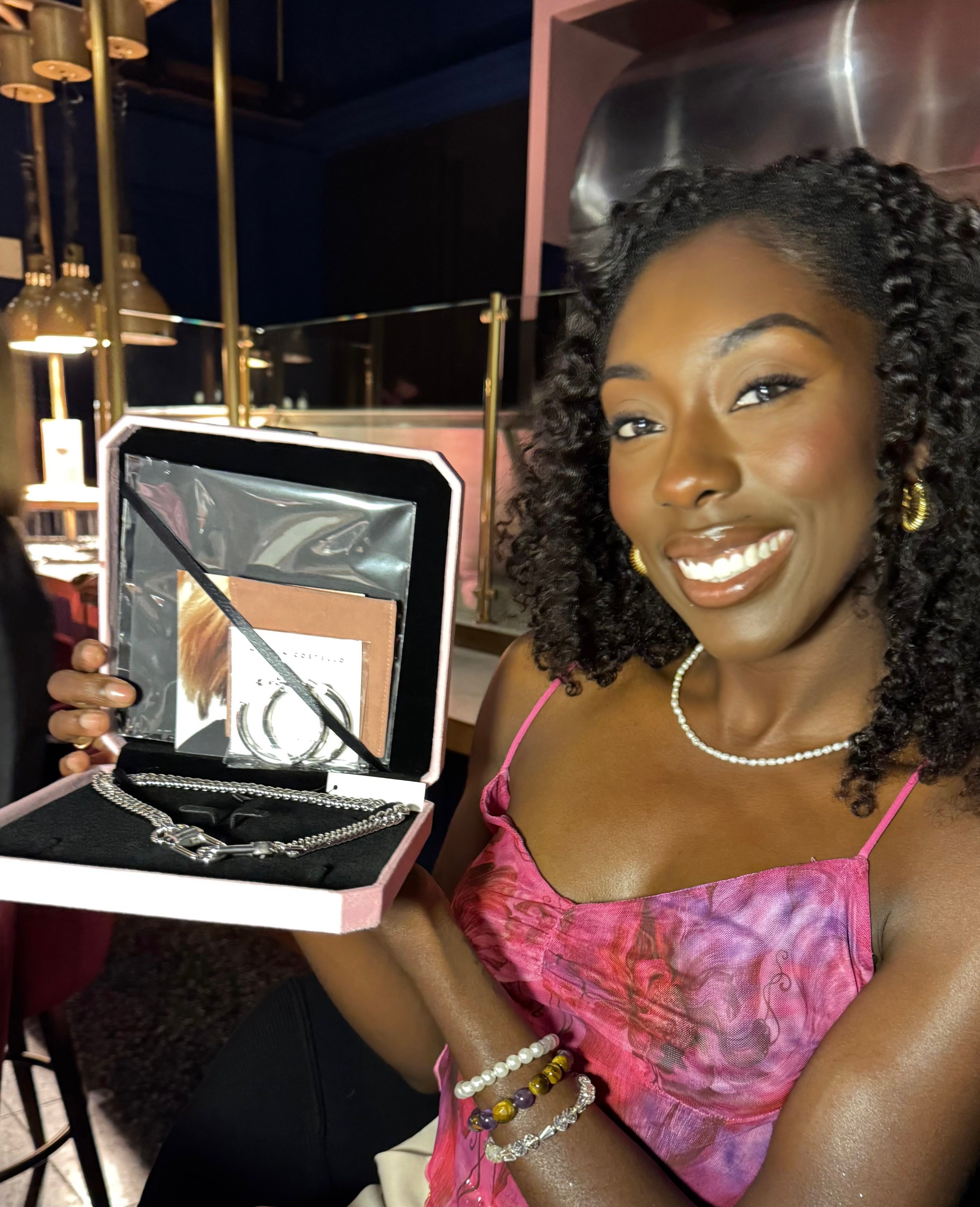 The evening’s giveaway featured her signature Gabriella Chain, a thoughtful extension of her brand’s mission to empower women to feel bold in what they wear.